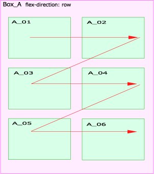 順方向 / 逆方向 / 折り返し無しjustify-content: flex-start(又は flex-end /